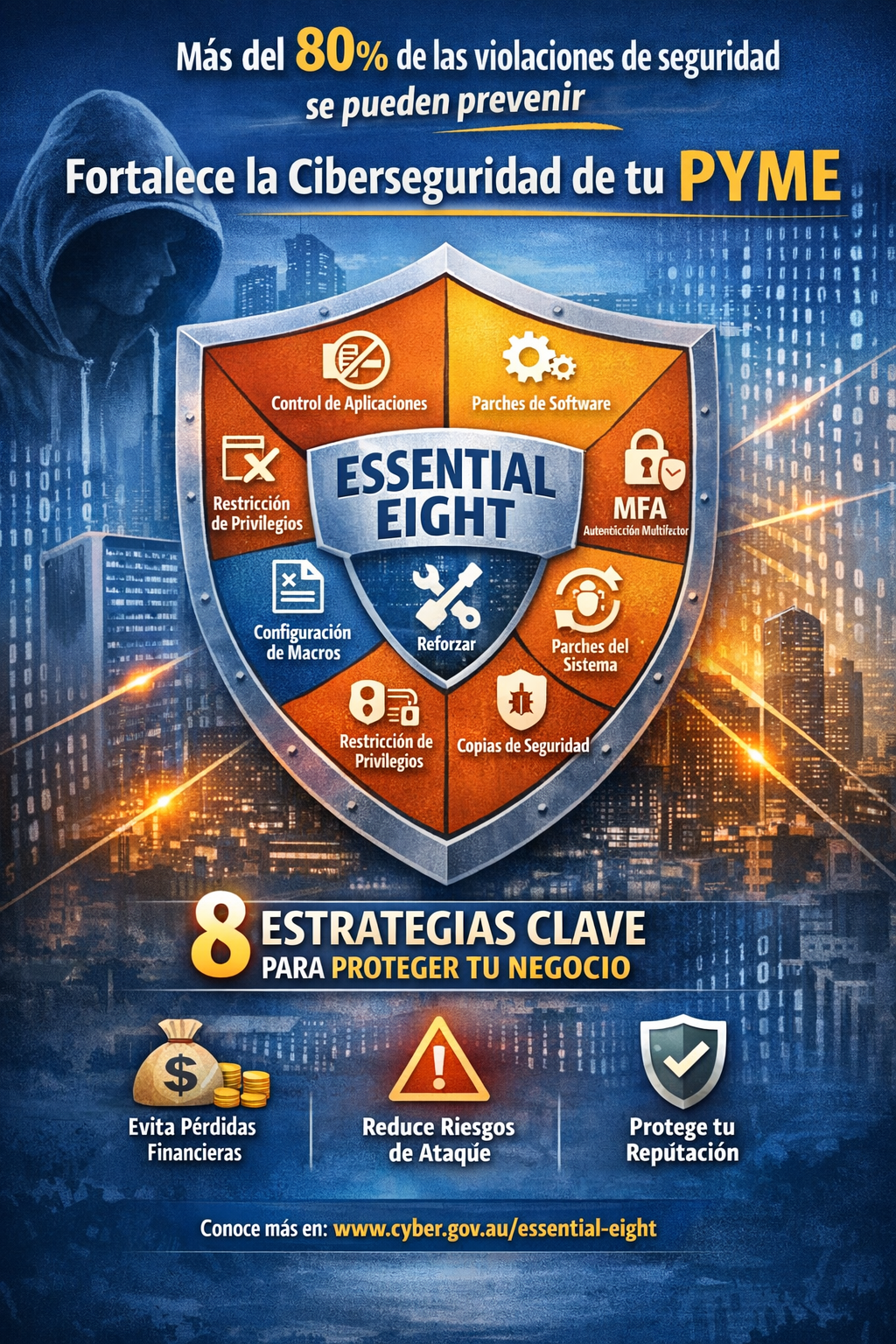 Los Ocho Esenciales son un marco de ciberseguridad desarrollado por la Dirección de Señales de Australia (ASD). Esta guía está diseñada para ayudar a las empresas a establecer defensas robustas contra amenazas cibernéticas cada vez más sofisticadas.